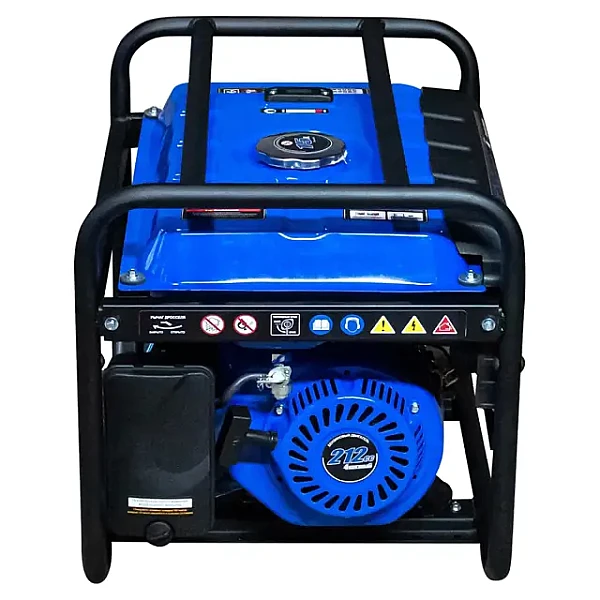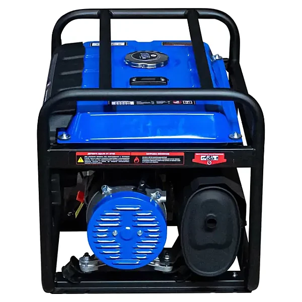 Рама бензинового генератора выполнена из прочной стали и покрыта антикоррозийным составом. Данная модель оснащена двигателем с верхним расположением клапанов, которые имеют увеличенный ресурс работы, а также снижают шум и выхлоп. Запуск мотора выполняется вручную.