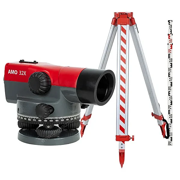 Комплект оптического нивелира AMO 32X - комплексное решение для строительства, геодезии и дорожных работ, проверенное профессионалами в полевых условиях. В набор входит прибор с увеличением 32 крат, трехметровая рейка, алюминиевый штатив с надежной винтовой фиксацией стоек и принадлежности для юстировки.