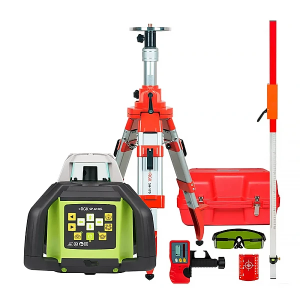 Купить Комплект: ротационный нивелир RGK SP-610G + штатив, рейка в Туле легко — просто позвоните по телефону: 8-800-551-11-01