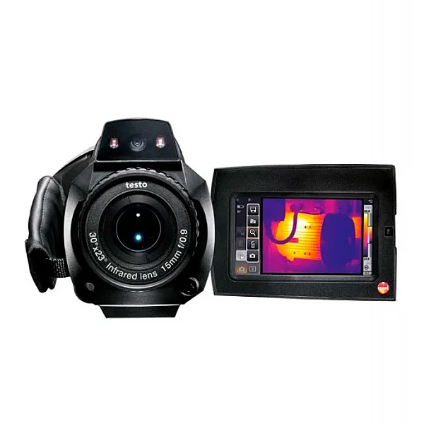 При создании этой модели тепловизора Testo было применено несколько отличных решений в плане эргономики. Прибор выполнен в форм-факторе обычной портативной видеокамеры, при этом ручка и дисплей регулируются по положению в широком диапазоне. Управление всеми функциями возможно в 2 вариантах - с помощью джойстика, либо же непосредственно через сенсорный экран.