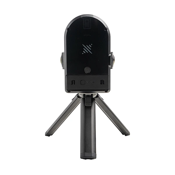 Пространственная камера SLAM-сканера, благодаря компактным размерам и небольшому весу, не превышающему 0,9 кг, позволяет вести съемку территорий и помещений "с руки" без особых усилий, просто перемещаясь по маршруту пешком или с использованием транспортных средств. Изделие снабжено лидаром в передней части, парой горизонтально размещенных фронтальных камер, регистрирующих мельчайшие детали обстановки, и двумя боковыми камерами с объективом "рыбий глаз" с широким обзором, за счет чего обеспечивается полный визуальный охват окружающего пространства. С тыльной стороны изделия размещен слот под съемный аккумулятор с индикаторами и кнопкой включения, и функциональная кнопка, обеспечивающая запуск и остановку съемочного процесса, а также принудительный перевод сканера в режим USB накопителя. Используя комплектный крепеж, на устройстве можно зафиксировать пользовательский смартфон, и управлять изделием и контролировать процесс съемки через бесплатное приложение LixelGO.