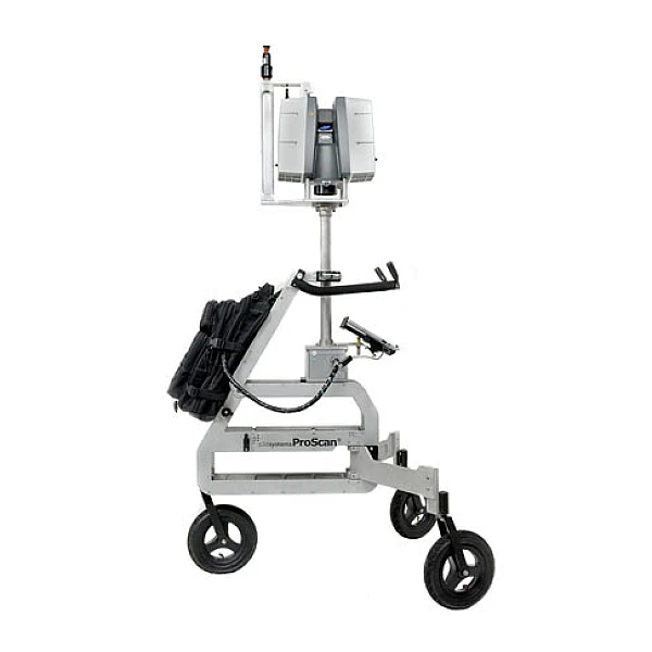 Мобильный лазерный сканер Leica ProScan – это автономная сканирующая платформа, с помощью которой можно производить трехмерное сканирование внутри помещений и на открытых площадках. Устройство представляет собой штатив-подставку на колесах, которую можно перемещать по твердой поверхности или полу. Она обеспечивает надежное крепление для наземных лазерных сканеров Leica и позволяет перемещать сканер по объекту для сбора данных во время движения.