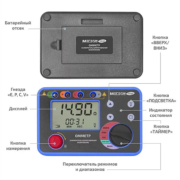 Купить Омметр (измеритель сопротивления заземления) МЕГЕОН 13030 в Туле легко — просто позвоните по телефону: 8-800-551-11-01