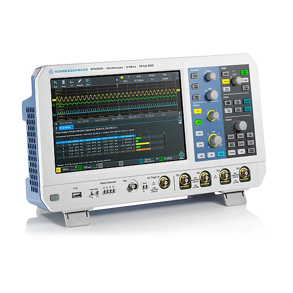 Осциллограф RTM3004, разработанный компанией Rohde & Schwarz, является одним из представителей новой серии RTM3000. Данная линейка оборудования была представлена в начале 2018 года и за короткое время получила массу положительных отзывов от специалистов многих промышленных направлений. Из основных технических характеристик стоит отметить четыре изолированных разъема и полосу пропускания 100 МГц. Главной отличительной особенностью этой модели можно назвать 10 битный аналого-цифровой преобразователь собственной разработки. По сравнению с классическим 8-битным АЦП, он обеспечивает четырехкратное улучшение вертикального разрешения. Это гарантирует обнаружение малейших единичных аномалий и отклонений.