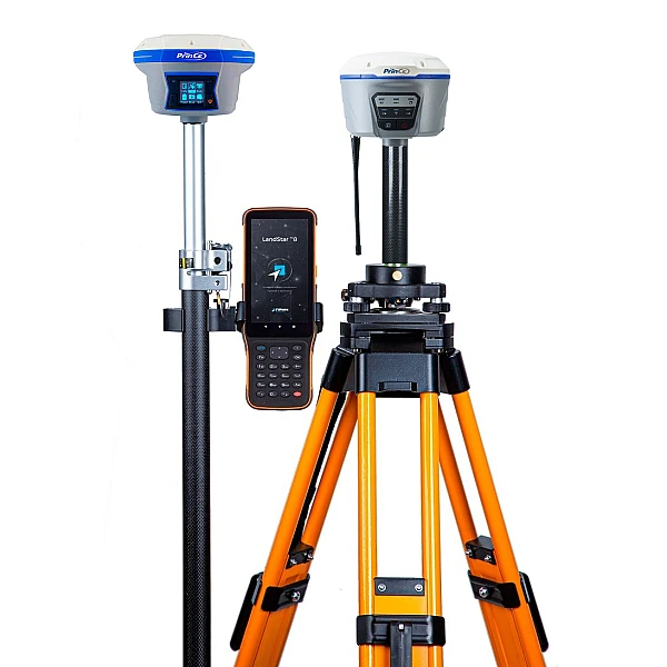Приёмник PrinCe i50 используется в качестве базы, а приёмник PrinCe i90 с контроллером - в качестве ровера.