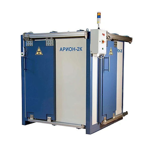 Камера радиационной защиты представляет собой каркасную конструкцию из свинца и стали с внутренним наполнением. Состоит из трёх элементов: кабина радиационной защиты, выдвижной ложемент для загрузки объекта контроля и манипулятор для рентгеновского аппарата. Для световой сигнализации наличия/отсутствия рентгеновского излучения предусмотрена лампа-вспышка.