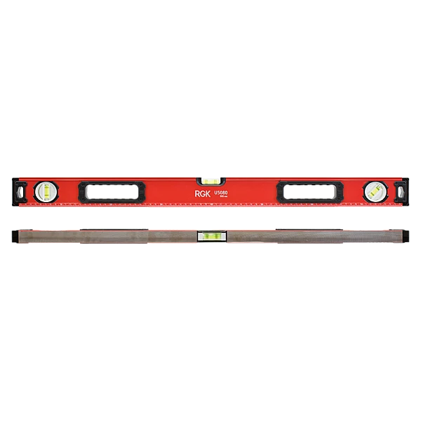Магнитный уровень RGK U5080 длиной 80 сантиметров оснащен двумя магнитами на противоположных сторонах для крепления уровня на металлической поверхности, чтобы освободить руки при проведении разметки.