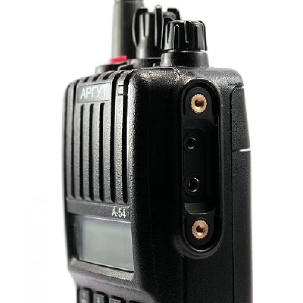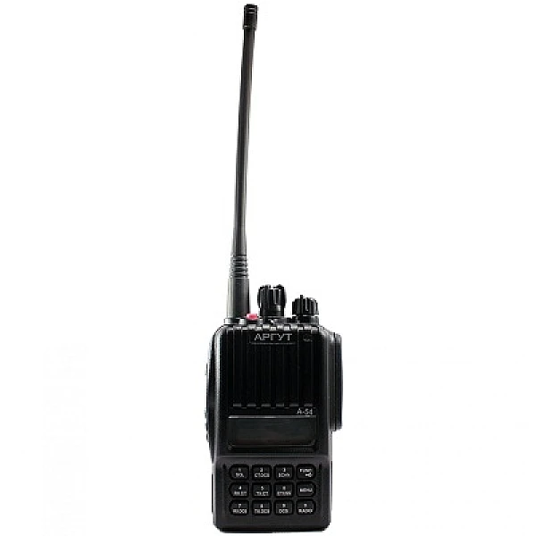 Радиостанция Аргут А-54 предназначена для работы в диапазоне 400-480 МГц. Максимальная мощность 5 Вт, предусмотрена возможность изменения выходной мощности для экономии заряда аккумулятора. Комплектуется Li-ion аккумулятором, емкостью 2300 мАч.