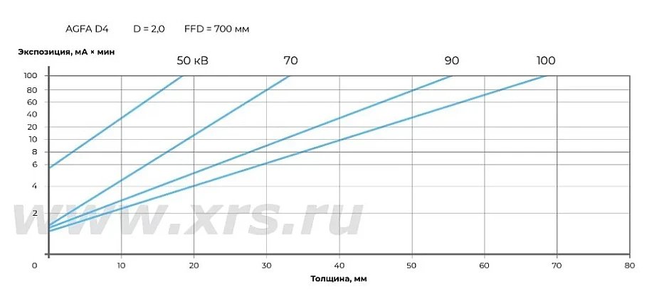 Время экспозиции, величина анодного напряжения и анодного тока настраиваются вручную через пульт управления: диапазон установки напряжения составляет от 50 до 160 кВ, диапазон силы тока — от 0,5 до 5 мА. Это позволяет подбирать оптимальный режим просвечивания в каждом конкретном случае.