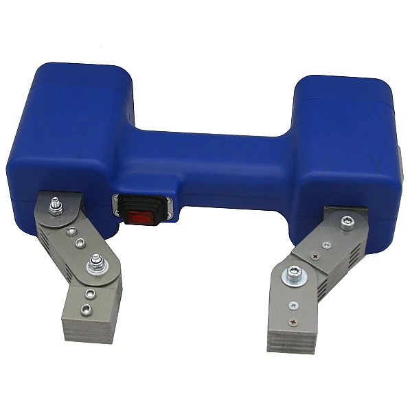 Новый универсальный электромагнит РМ-9 предназначен для работы от встроенного аккумулятора как с переменным полем (АС), так и с постоянным магнитным полем (DС). Уникальная конструкция обеспечивает максимум удобства для оператора при работе и обеспечивает также автоматическое размагничивание участка изделия после контроля.