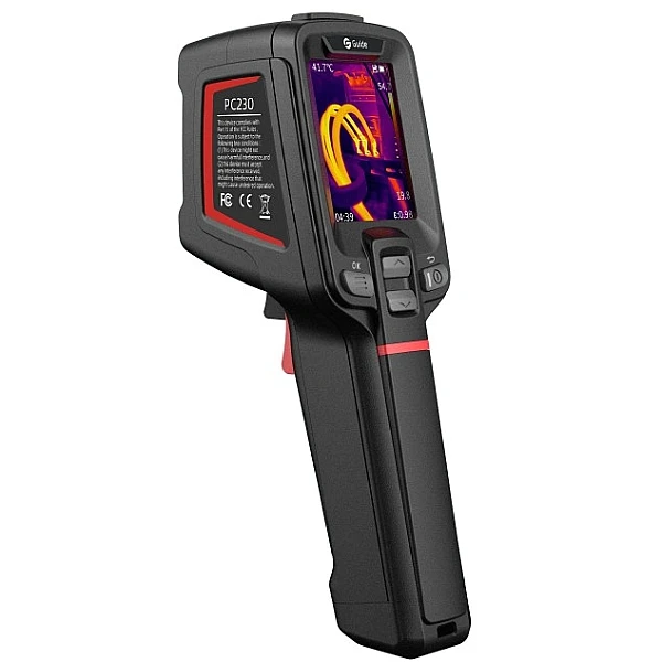 Оборудованный цифровой камерой, тепловизор Guide PC230 может выводить на встроенный экран инфракрасное, визуальное, совмещенное изображение и "картинку в картинке". Предусмотрена возможность регулировки яркости в автоматическом, полуавтоматическом или ручном режиме. Прибор оснащен съемной картой памяти SD – для сохранения термограмм и их просмотра на встроенном дисплее или внешнем устройстве. Для обеспечения повышенной точности измерения температуры целевых объектов через настройки можно задавать пределы измерительного диапазона, величину коэффициента излучения поверхности, температуру воздуха и расстояние до цели. Для работы при недостаточном освещении служит подсветка, а для точного наведения на объект измерений – лазерный указатель.