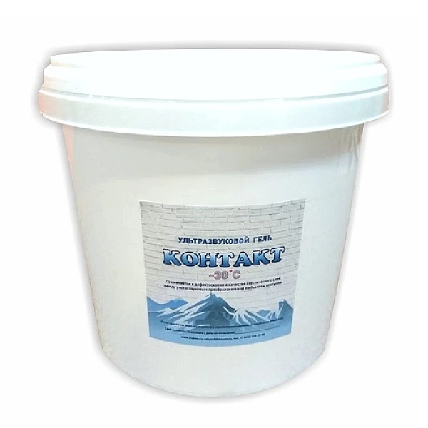 Гель «КОНТАКТ»  в ведре 3800мл (4 кг.) – применяется в дефектоскопии в качестве акустического слоя между ультразвуковым преобразователем и объектом контроля. Не требует специальных средств для удаления с поверхности. Легко удаляется с поверхности водой или сухой ветошью.