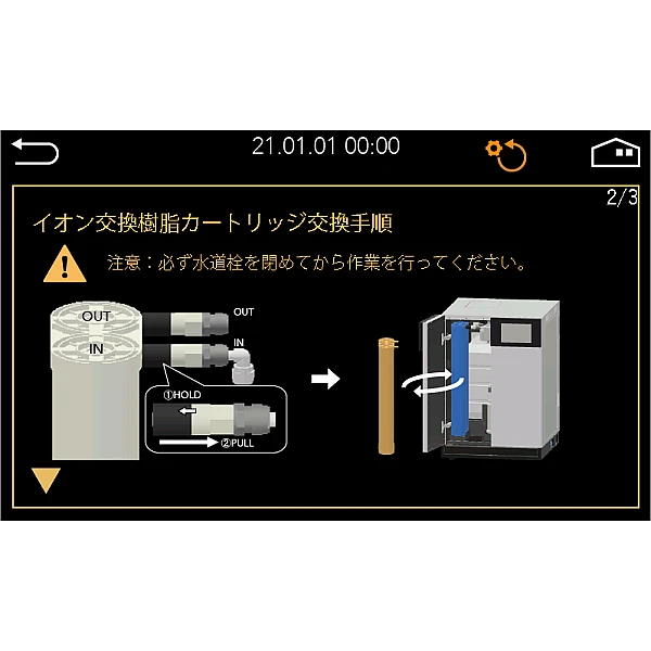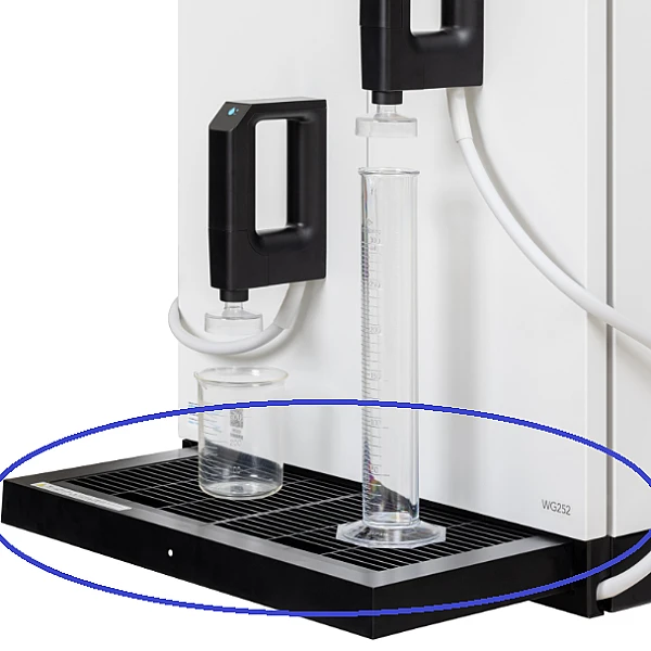 Шланг подачи / слива воды (около 2 м.), соединительный шланг в сборе, Картридж предварительной очистки, Картридж с ионообменной смолой, Мембранный фильтр, Зажим для шланга, уплотнительная лента. Поддон для отбора проб воды - выдвижной тип, несущая способность 10 кг, для стакана 5 л |